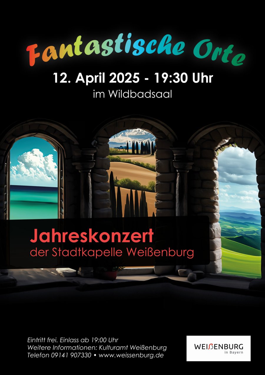 Jahreskonzert 12.4.2025 Maibaumaufstellen Weißenburg 30.4.2025 Kirchweihumzug Weißenburg 24.8.2025 Weihnachtsmarkteröffnung Weißenburg 12.12.2025 Weihnachtsmarkt 19.12.2025